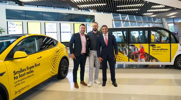 MIAMI, FLA – Brightline, the only provider of modern, eco-friendly, intercity rail in America, unveiled its new fully integrated, door-to-door booking service Brightline+ which will include a Brightline-branded mobility fleet. The fully electric mobility fleet is Brightline’s investment to provide travelers in South Florida a door-to-door solution to travel by train, powered by Brightline’s new app and supported by the fleet. The service will enable customers to book seamless transportation across multiple modes of private and public transportation for the first and last miles of their journeys — which will make Brightline the most integrated multimodal planning and ticketing app in North America.
