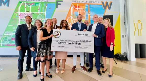 MIAMI, FL – Today, Brightline and a bipartisan coalition of congressional officials announced a grant award of $25 million from the United States Department of Transportation’s Rebuilding American Infrastructure with Sustainability and Equity (RAISE) discretionary grant program. The Florida Department of Transportation (FDOT), in partnership with Brightline, was awarded the grant to enhance safety along the Florida East Coast Railway/Brightline corridor between Miami-Dade and Brevard counties. The award, combined with up to $20 million in matching funds from FDOT and Brightline, will result in a $45 million investment.