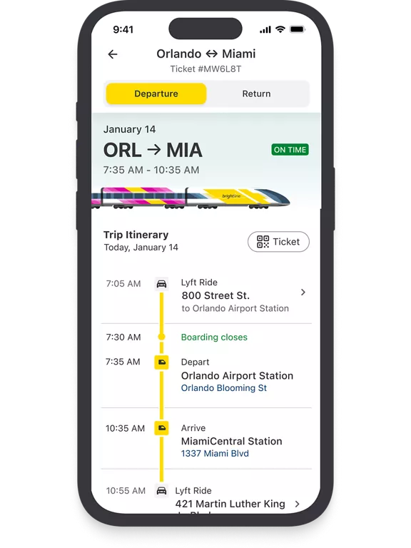 Our app makes enjoying Brightline easier than ever, and it can even unlock some extra perks. Book, change, or cancel tickets while on the go. Everything you need, right on your phone.